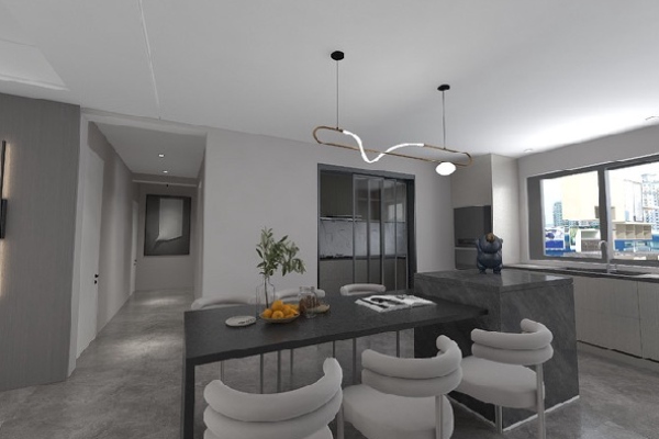 极简风格青年旅社酒店前台装修效果图